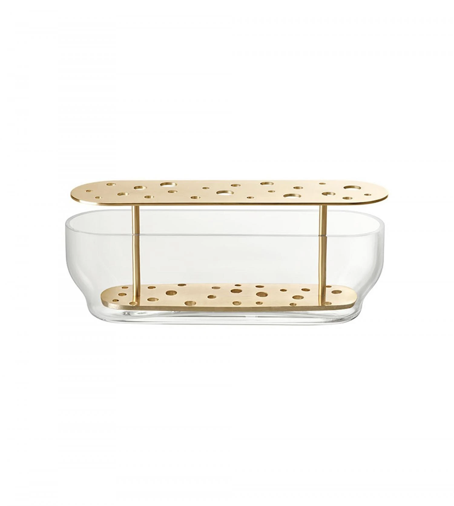 Comme dans une auberge espagnole, chacun a participĂ© Ă sa maniĂšre Ă cette Ă©lĂ©gante crĂ©ation. La dĂ©bordante imagination du designer a donnĂ© naissance au vase Ikebana Long, mettant Ă lâhonneur lâart floral japonais Ă travers une crĂ©ation conçue artisanalement pour Fritz Hansen. Le verre rencontre ici une structure en laiton ponctuĂ©e dâorifices permettant le passage dâune tige ou dâun branchage. Lâensemble, graphique et Ă©purĂ© rĂ©vĂšle lâagencement harmonieux de la matiĂšre. Une composition zen, une piĂšce design unique pour tout type de dĂ©coration, de la plus sage Ă la plus audacieuse. Sur une table basse dans un salon, sur le rebord dâune fenĂȘtre dans une salle de bains et partout ailleurs dans la maison, le vase long Ikebana Fritz Hansen fait souffler un vent de fraicheur et vibre dâune dĂ©licatesse toute nippone. La maison danoise poursuit son exploration des possibilitĂ©s offertes par le design en collaborant avec de jeunes crĂ©atifs comme Jaime Hayon tout en continuant lâĂ©dition des piĂšces iconiques imaginĂ©es il y a quelques dĂ©cennies par Arne Jacobsen. Avec la gamme de vases Ikebana Fritz Hansen fait souffler un peu de poĂ©sie Ă travers des objets cĂ©lĂ©brant lâĂ©vanescence des choses. DĂ©licieux haĂŻkus.