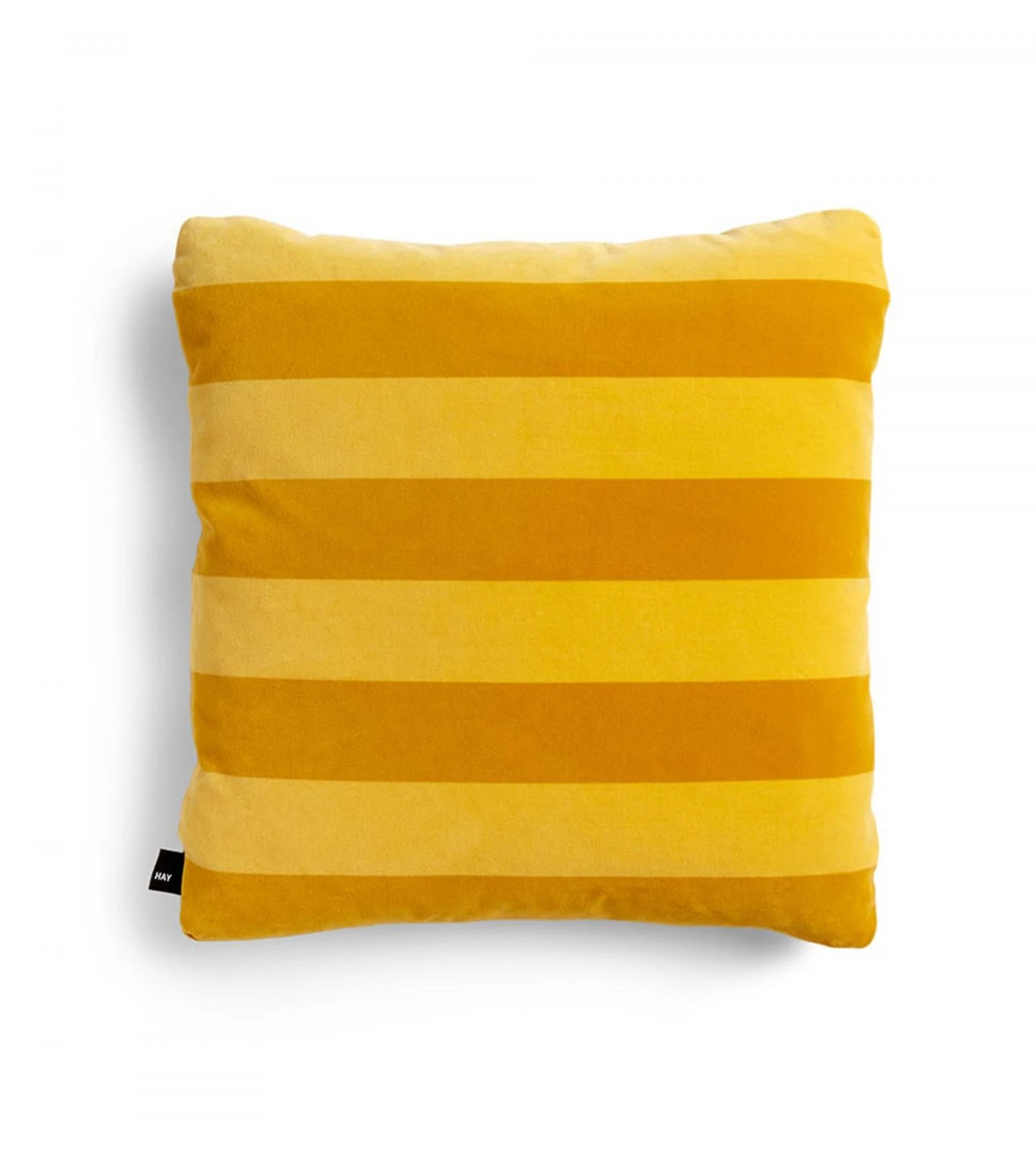 Coussin rayĂ©s en velour dans un conteste de couleurs viveÂ