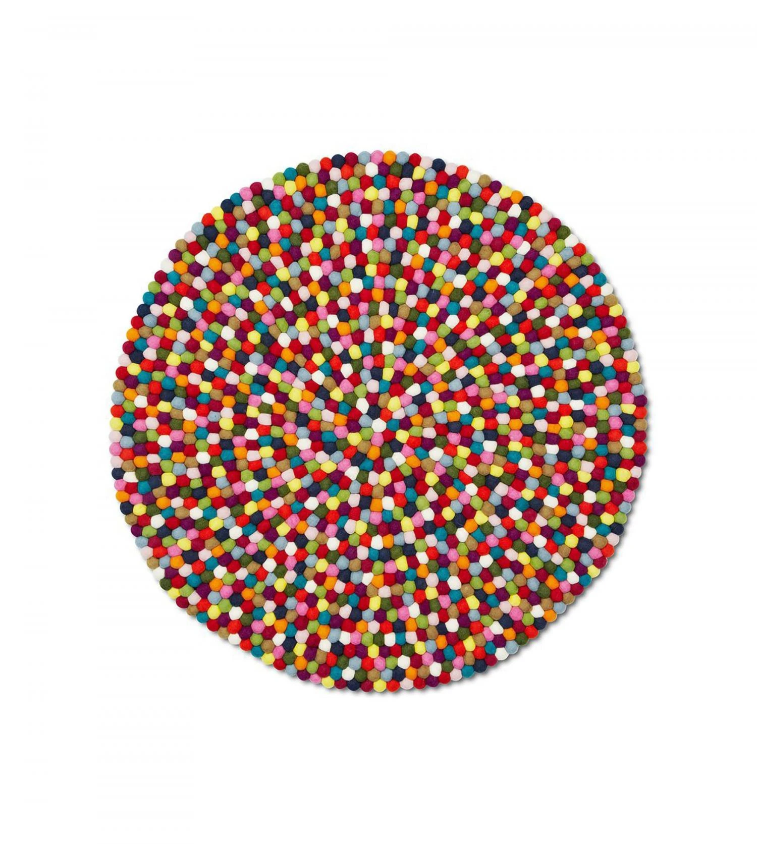 Pinocchio est un tapis qui fait sourire : rond, il est composĂ© de billes en laines toutes colorĂ©es. Ce tapis, inspirĂ© des petits bonbons danois, est fait au NĂ©pal oĂč chaque bille y est feutrĂ©e et enfilĂ©e sur un fil Ă la main.