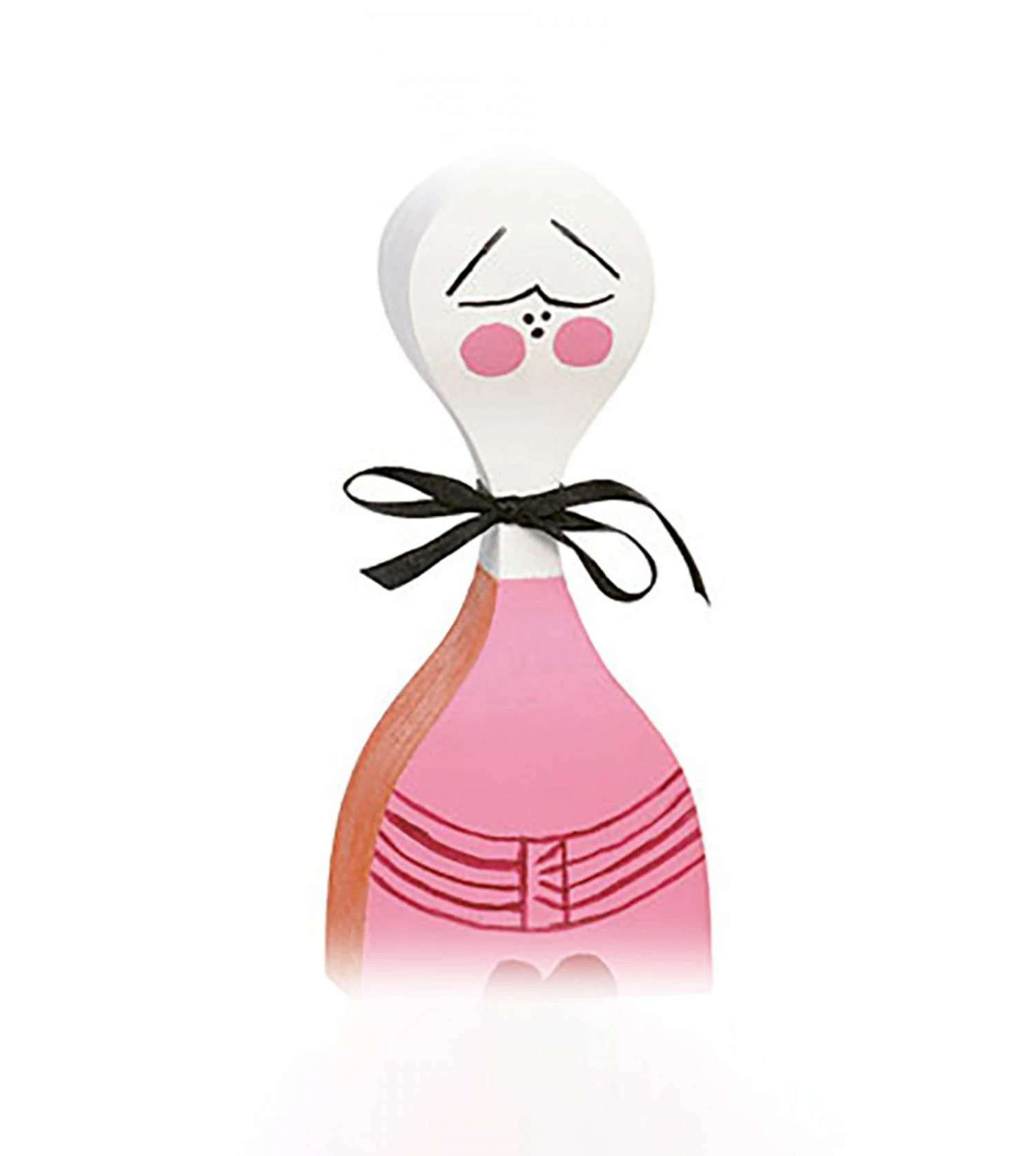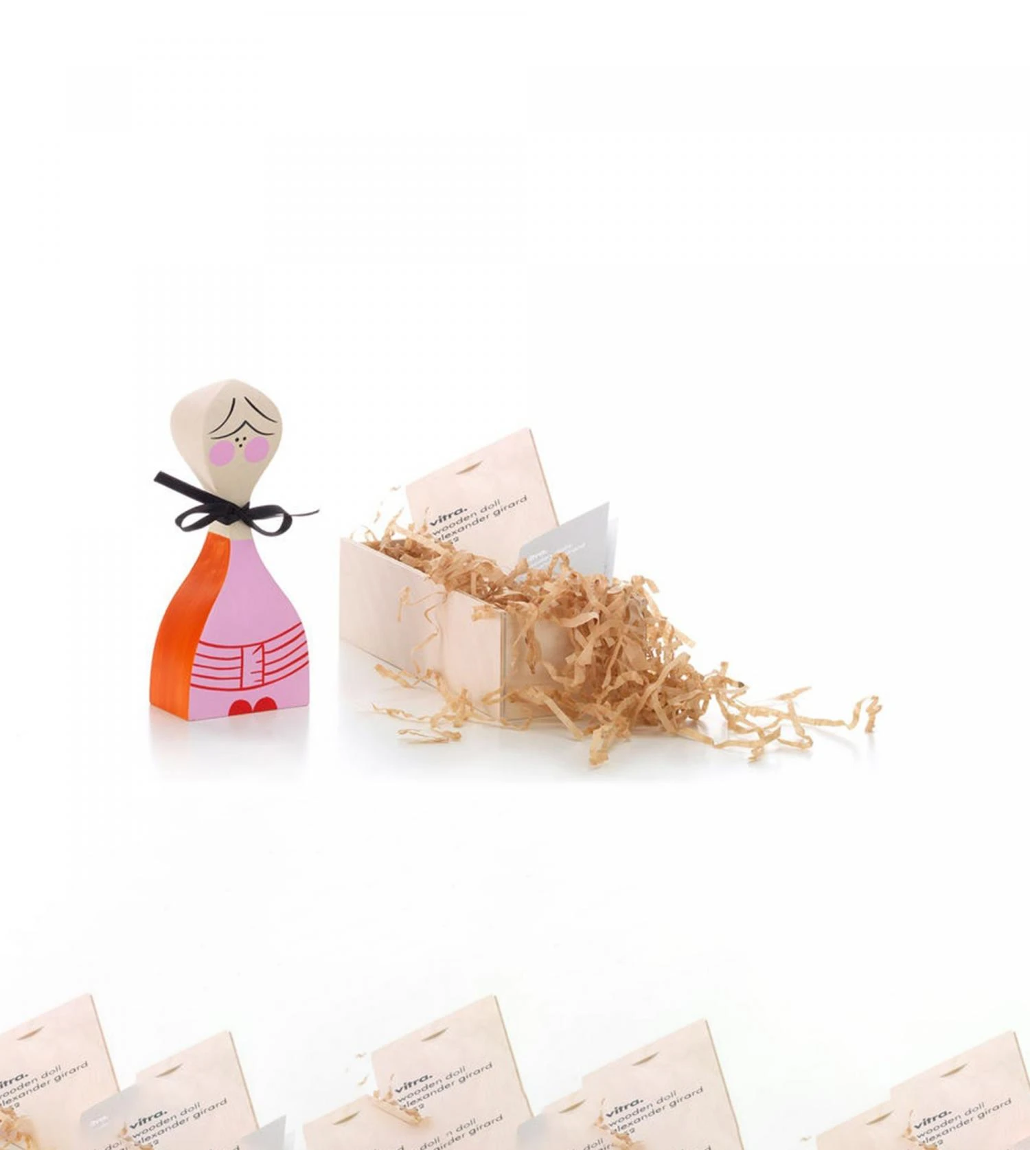 Figurine aux traits humains dotĂ©e d’un petit ruban, la poupĂ©e en bois n°2 de la collection wooden dolls signĂ©e Alexander Girard apportera une touche dĂ©corative colorĂ©e Ă tous les intĂ©rieurs grĂące Ă ses motifs roses et rouges peints Ă la main. ImaginĂ©e Ă Â lâorigine par et pour le designer amĂ©ricain Alexander Girard, cette poupĂ©e graphique en sapin massif a depuis rejoint le catalogue de la marque Vitra qui donne ainsi la possibilitĂ© aux amateurs de dĂ©coration intĂ©rieure de possĂ©der un exemplaire unique dâune de ces figurines. SculptĂ©e et peinte Ă la main, la wooden doll n°2 Ă lâexpression Ă©nigmatique baladera sa silhouette douce dans toutes les piĂšces de la maison, de lâentrĂ©e Ă la chambre Ă coucher en passant par le bureau, la salle Ă manger et le salon. Seule ou accompagnĂ©e dâune autre poupĂ©e de la gamme comme la fĂ©line wooden doll Cat (en vente chez Blou) elle se met en scĂšne sur une Ă©tagĂšre, une enfilade, une Ă©tagĂšre ou une table basse. Sculpture en bois, Ă©lĂ©ment dĂ©coratif design ou jouet pour petits ou grands : chacun attribuera le rĂŽle quâil veut Ă cette figurine agrĂ©mentĂ©e dâun ruban nouĂ© autour du cou. Inspirants et inspirĂ©s, les motifs graphiques imaginĂ©s par Alexander Girard pour ses poupĂ©es en bois comme pour ses nombreuses crĂ©ations textiles sont nĂ©s de sa passion pour les arts populaires sud-amĂ©ricains et asiatiques. La wooden doll n°2 Vitra plaira aux amateurs de design et de dĂ©coration intĂ©rieure Ă la recherche dâune crĂ©ation atypique et ludique aux accents naĂŻfs capable de donner facilement du style Ă un lieu. ImaginĂ©e en 1952, cette poupĂ©e intemporelle et colorĂ©e possĂšde une Ă©lĂ©gance graphique toujours dâactualitĂ©. Un bon dĂ©but pour commencer une nouvelle collection.