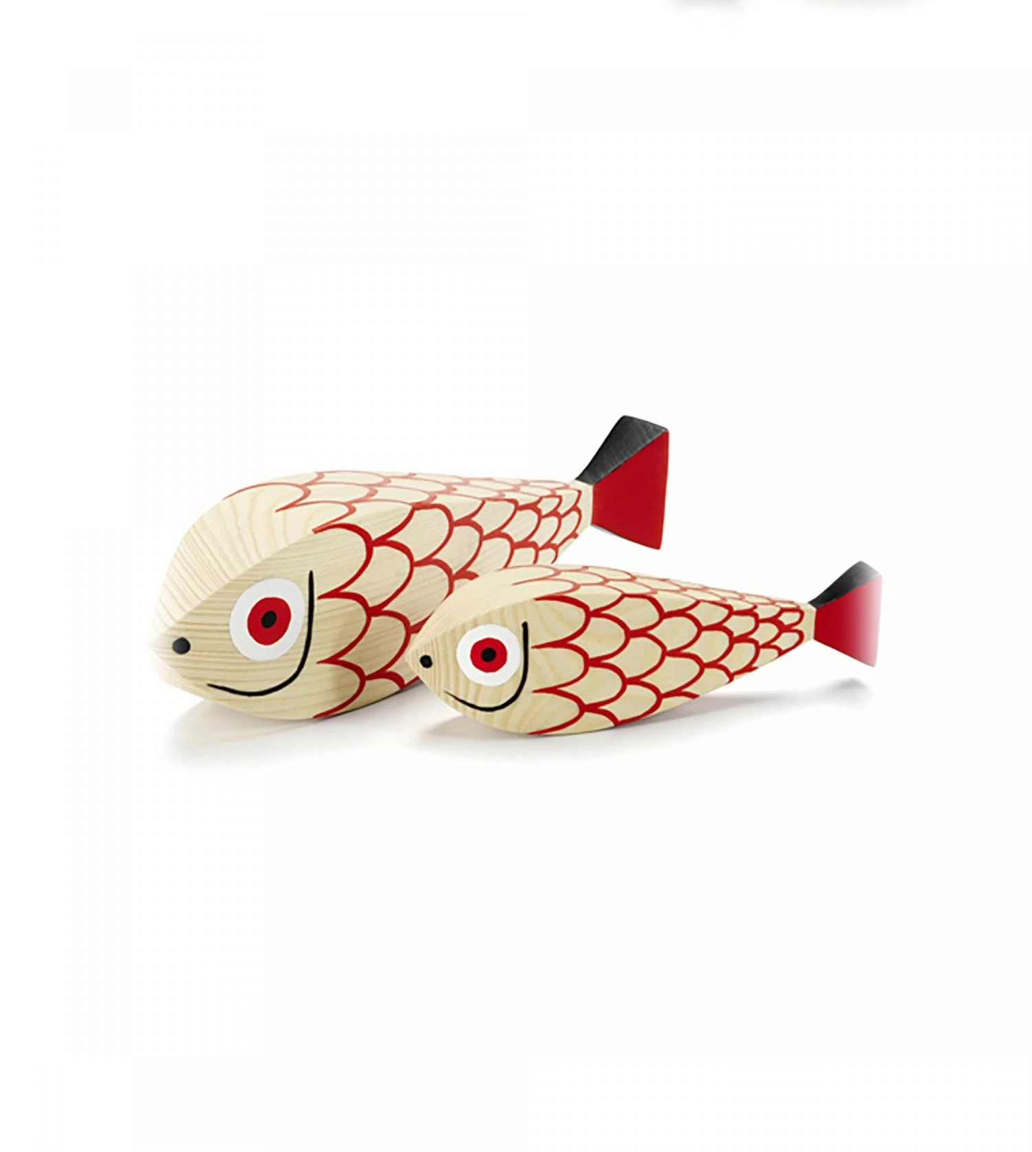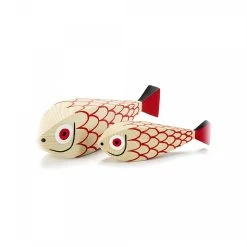 Issue dâune collection de poupĂ©es colorĂ©es, la wooden doll mother Fish and Child Ă©ditĂ©e par Vitra est nĂ©e en 1952 de lâimagination du designer, graphiste, scĂ©nographe et architecte amĂ©ricain Alexander Girard. Duo de petites sculptures en bois massif (sapin) en forme de poissons, fabriquĂ©es et peintes Ă la main, ces figurines aux motifs joyeux et graphiques font toujours autant dâeffet 7 dĂ©cennies aprĂšs leur crĂ©ation. Créés Ă lâorigine pour la dĂ©coration de la propre maison du designer, ces poupĂ©es en bois dĂ©clinĂ©es sous diffĂ©rentes formes, animales ou humaines, en divers tailles et coloris, portent en elles tout le talent et la fantaisie dâAlexander Girard qui vouait une passion particuliĂšre aux arts populaires sud-amĂ©ricains et asiatiques. La beautĂ© graphique de ce duo mĂšre fils de petits poissons rouges sĂ©duira les amateurs de dĂ©coration et de design Ă la recherche dâun Ă©lĂ©ment capable dâapporter Ă son environnement une touche Ă la fois ludique et poĂ©tique.