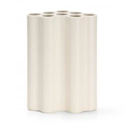 PoĂ©tiques et dĂ©licats, les vases Nuage imaginĂ©s par les designers Ronan et Erwan Bouroullec pour lâĂ©diteur Vitra font flotter un vent de lĂ©gĂšretĂ© et de rĂȘverie. FabriquĂ© Ă la main, chaque vase Nuage en cĂ©ramique porte en lui une particularitĂ© quasi indĂ©celable mais qui donne Ă chacune des piĂšces un Ă©clat singulier. ProposĂ© en 3 formats (small, medium et large), ce vase ondulĂ© comprenant 8 cavitĂ©s  sĂ©duira les amateurs de design et de dĂ©coration intĂ©rieure avec sa silhouette graphique et les possibilitĂ©s crĂ©atives quâil offre. UtilisĂ© seul ou associĂ© Ă dâautres vases de la gamme (identiques ou de taille diffĂ©rente) il permet de mettre en scĂšne des compositions florales originales, de revisiter les bouquets traditionnels et de faire entrer un brin de poĂ©sie dans son intĂ©rieur. La beautĂ© graphique du vase Nuage en fait un objet dĂ©coratif Ă part, capable de se suffire Ă lui-mĂȘme. DestinĂ© Ă sublimer la beautĂ© naturelle des herbes et des fleurs, ce vase design contemporain nâoublie pas dâĂȘtre fonctionnel. Motif trĂšs apprĂ©ciĂ© par Ronan et Erwan Bouroullec, le nuage est indissociable de leur Ćuvre. Rondeur, douceur et lĂ©gĂšretĂ© sâinvitent Ă la maison avec ce vase atypique en cĂ©ramique de couleur ivoire que lâon apprĂ©ciera dans de nombreuses piĂšces de la maison, de lâentrĂ©e Ă la chambre Ă coucher en passant par la cuisine, la salle Ă manger et le salon. LâĂ©lĂ©gance Ă©purĂ©e du vase Nuage Vitra lui ouvrira les portes de tous types dâintĂ©rieurs, des plus classiques aux plus tendance. ProposĂ©e Ă©galement en aluminium anodisĂ© (en vente chez Blou), cette crĂ©ation design permet Ă chacun dâexercer sa crĂ©ativitĂ© en agençant diffĂ©rents modĂšles entre eux, en arrangeant fleurs et bouquets avec panache et inventivitĂ©. Vase Ă contempler sous tous les angles, Ă placer sur une cheminĂ©e, une table Ă manger, une Ă©tagĂšre ou une enfilade, Ă la maison ou ailleurs. Ondulant et onirique, le vase Nuage Vitra en cĂ©ramique enchante le quotidien et fait la pluie et le beau temps.